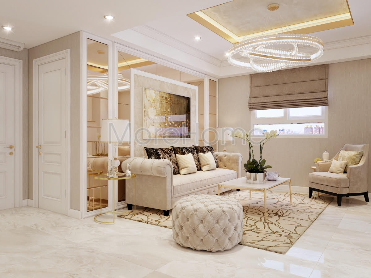 Chất liệu nhung nỉ mang nhiều vẻ biến đổi khi thích hợp với phong cách sang trọng tân cổ điển cách tân.